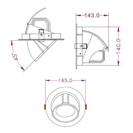 LED Banaan inbouwspot 30W ⌀165mm 45° Kantelbaar 360° Draaibaar