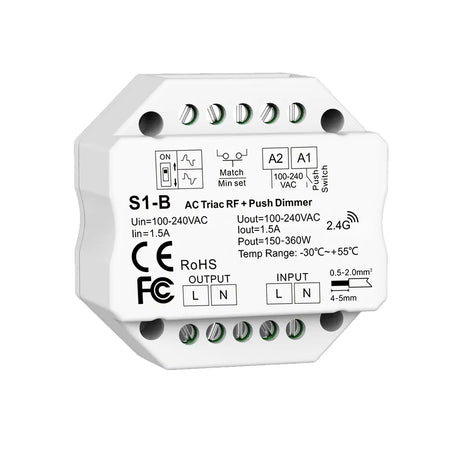Inbouw 52x52x26mm | 256 Dim niveaus 0-100% | Draadloos dimmen tot 30m