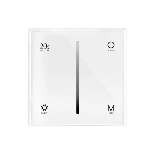 De dimmer heeft een touch glaspaneel met een ultragevoelige aanraakschuif en achtergrondverlichting. Met de schuif kunt u de verlichting geleidelijk dimmen of oplichten tot 100%. Het paneel is gemaakt van sterk glas en heeft een moderne uitstraling.