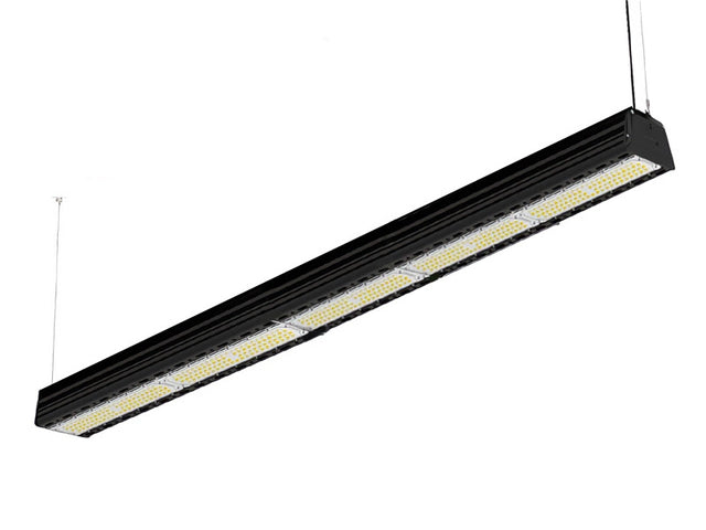 Deze lineaire LED highbay van 250W biedt krachtige, energiezuinige verlichting in industriële en commerciële ruimtes. Dankzij het balkvormige ontwerp verspreidt de highbay licht efficiënt over grotere oppervlakken. Hij is ideaal voor toepassingen zoals magazijnen, werkplaatsen, parkeergarages, sporthallen en kleinere loodsen. Met 150 lumen per watt levert deze highbay een lichtopbrengst van 37.500 lumen, waarmee hij een 2200W traditionele lamp vervangt, met een besparing van 70% op energieverbruik.