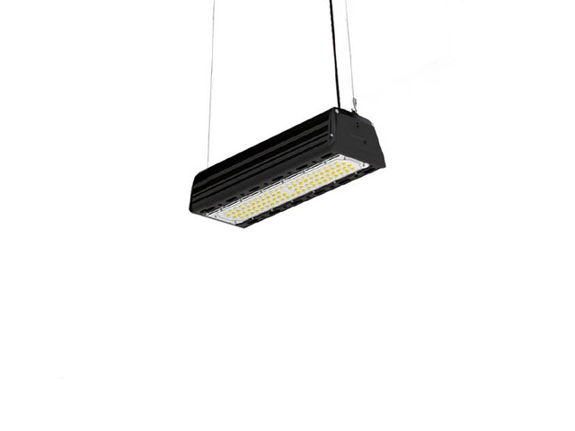 Deze lineaire LED highbay van 50W biedt krachtige, energiezuinige verlichting in industriële en commerciële ruimtes. Dankzij het balkvormige ontwerp verspreidt de highbay licht efficiënt over grotere oppervlakken. Hij is ideaal voor toepassingen zoals magazijnen, werkplaatsen, parkeergarages, sporthallen en kleinere loodsen. Met 150 lumen per watt levert deze highbay een lichtopbrengst van 7.500 lumen, waarmee hij een 160W-200W traditionele lamp vervangt, met een besparing van 70% op energieverbruik.
