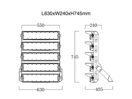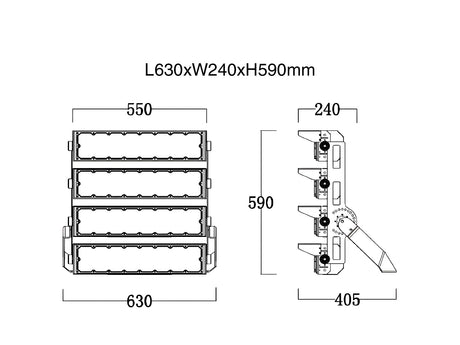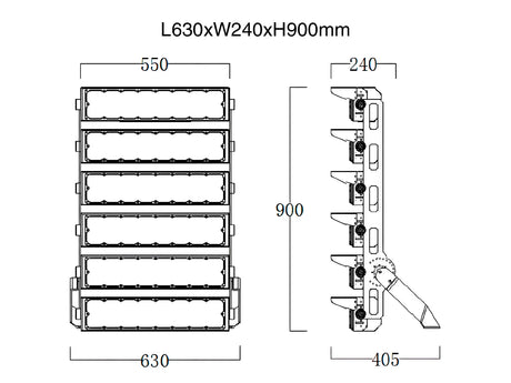 Vervangt 625W | 60% besparing | 90° kantelbaar