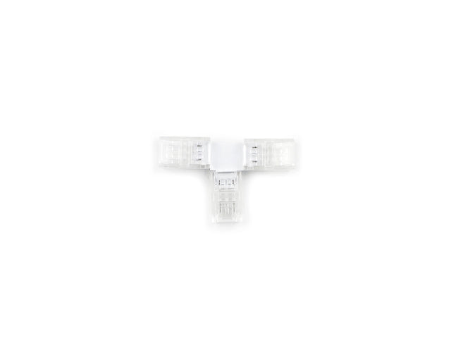 Met deze transparante T-connector splits je eenvoudig je 8 mm COB LED strip in drie richtingen. Ideaal voor creatieve installaties of hoekopstellingen waarbij je vanaf één punt meerdere stripdelen wilt voeden. Dankzij de kliksluiting is solderen overbodig, je klikt de strips er simpelweg in.