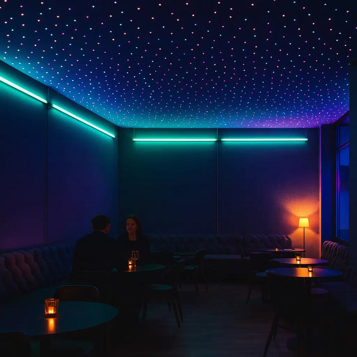 - Restaurant of Café: Restaurants en cafés kunnen RGB-verlichting gebruiken om verschillende sferen te creëren voor het ontbijt, de lunch en het diner. Warme kleuren kunnen de ruimte gezellig maken, terwijl koelere kleuren een frisse en levendige sfeer kunnen neerzetten.