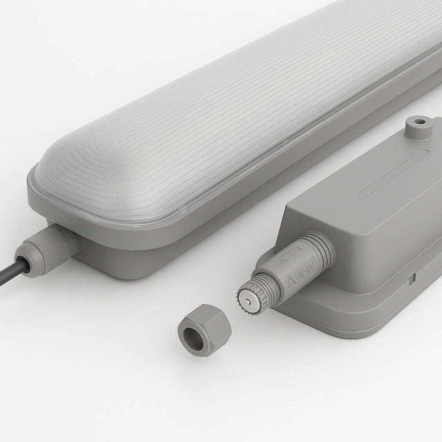 De armatuur monteer je eenvoudig aan het plafond of de wand met de meegeleverde beugels. Dankzij het koppelbare ontwerp schakel je meerdere units in serie, zonder extra bedrading, voor naadloze lichtlijnen tot 60 stuks. Aansluiting op 200–240 V en de ingebouwde Philips LED-driver garanderen direct stabiele, flikkervrije werking.